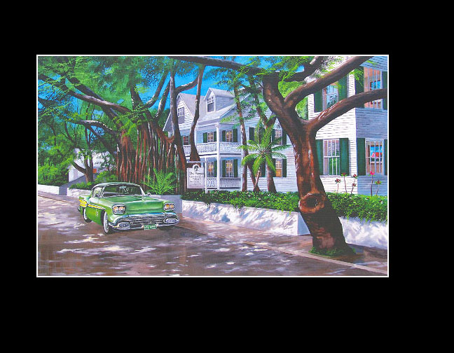 Each Print is a colorful reproduction of an acrylic painting of a Key West scene. Small & Medium prints are double matted. Large prints are single matted. All with white matting.