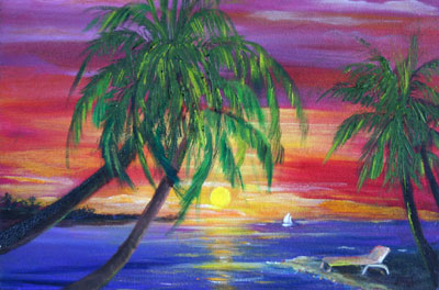 Tropical Paintings Decorate Your House with Key West Paintings Key West Artist Janis Jo Stevens creates colorful tropical scenes for your enjoyment! Each painting is done in acrylic paint and is framed in a double wooden frame. 8"x10" Mile Marker 0 Rooster14 Framed Oil Painting(Frame Size 13″x15″)$175.00 11"x14" Southernmost Rooster Framed Oil Painting(Frame Size 16″x19″)$195.00 Solo Palm Tropical Evening in Key West Lone Palm Sunset Meltdown Schooner Sunset Pelican Sunset Sunset Lounge Sunset Sail Deck Chairs Sunset 11"X14" Sunset Oil Painting $175.00 Style Deck Chairs Solo Palm Schooner Sunset Sail Pelican Sunset Lounge Sunset Meltdown Lone Palm