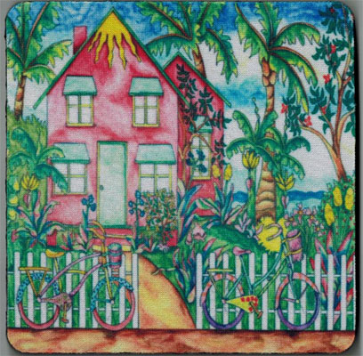 Tropical Coasters These colorful beverage coasters are constructed of a neoprene base with a printed original art overlay. The are excellant for both hot and cold containers as they absorb the condensation and protect the surface that they are sitting on. Spotted Ray Island Key West Bicycle Key West House Coconut Tree Tropical Fish Palm Tree Conch House Turtle $8.00 each Style Key West Bicycle Coconut Tree Conch House Tropical Fish Key West House Spotted Ray Island Turtle Palm Tree